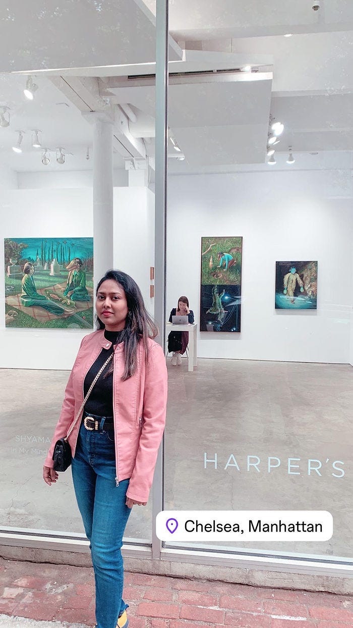 Shyama Golden's recent art show at Harper Gallery presents a compelling narrative woven through a series of meticulously crafted paintings. Each piece in this series takes the viewer on a profound journey, exploring themes of transformation, self-discovery, and rebirth.